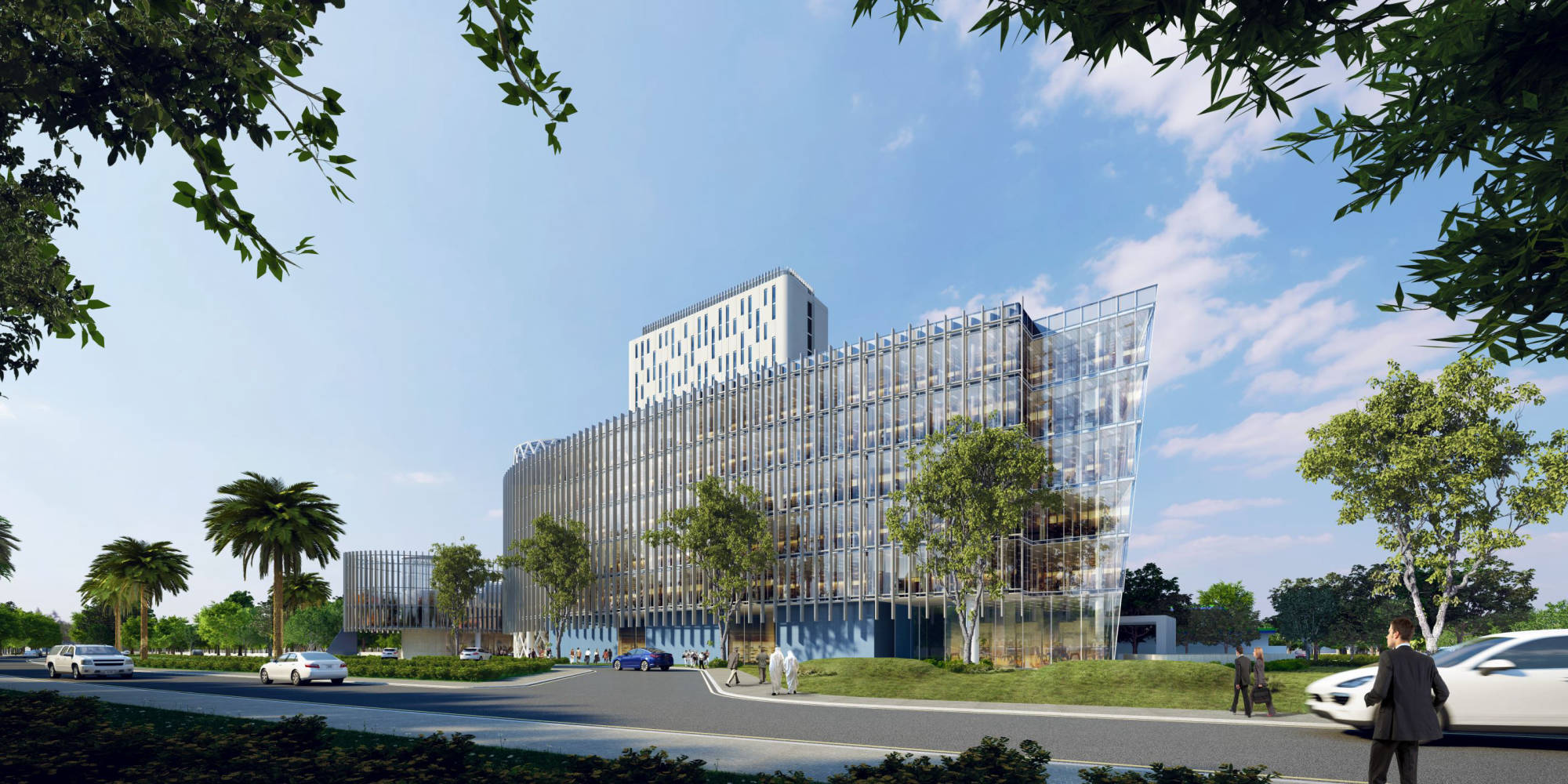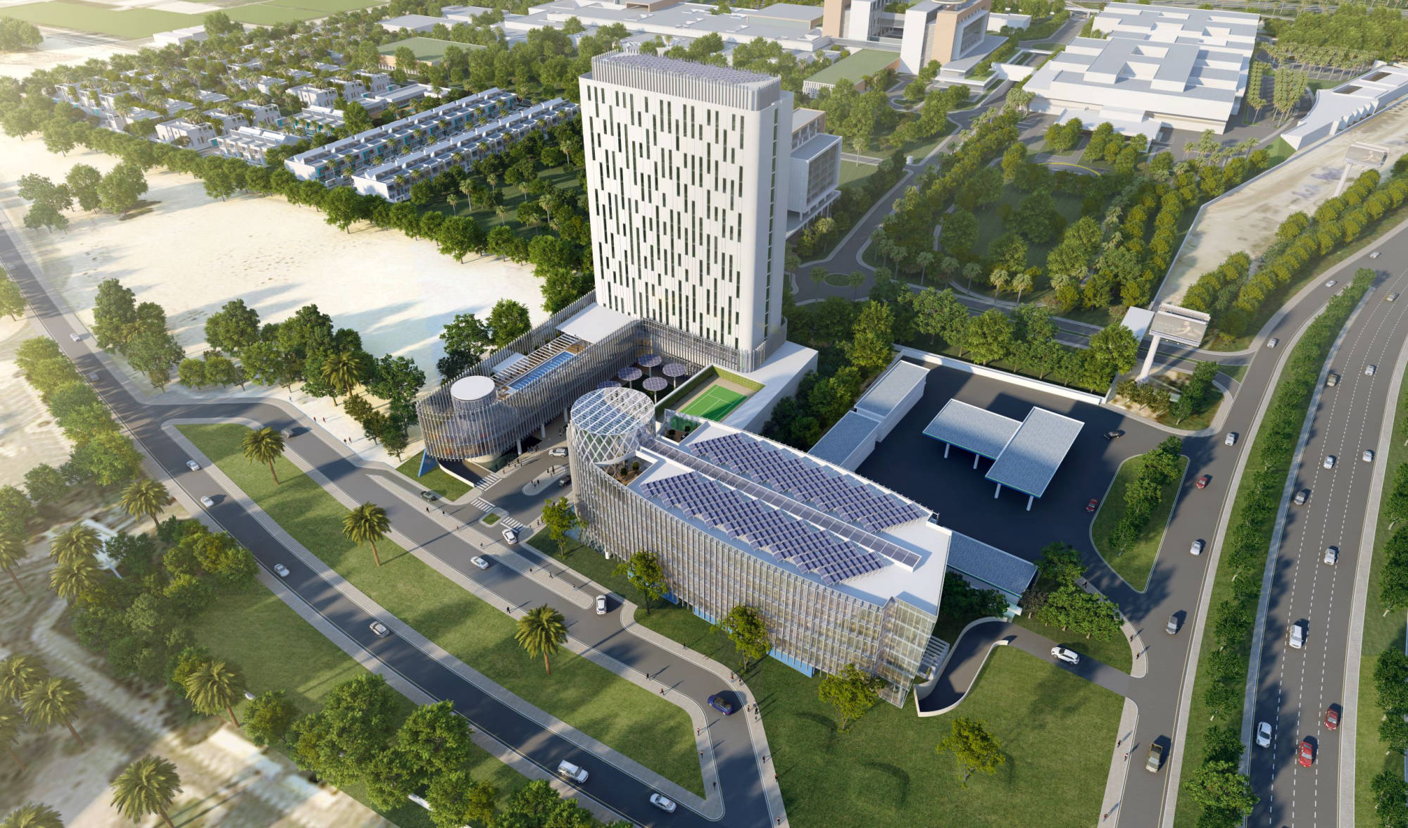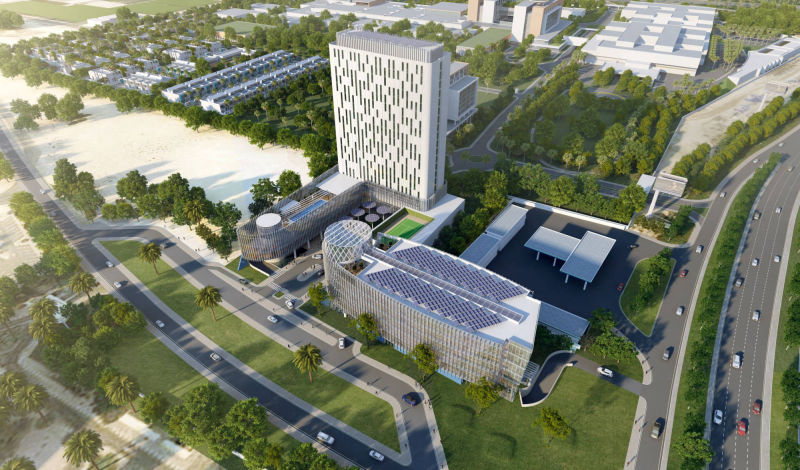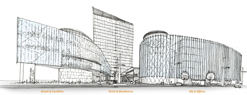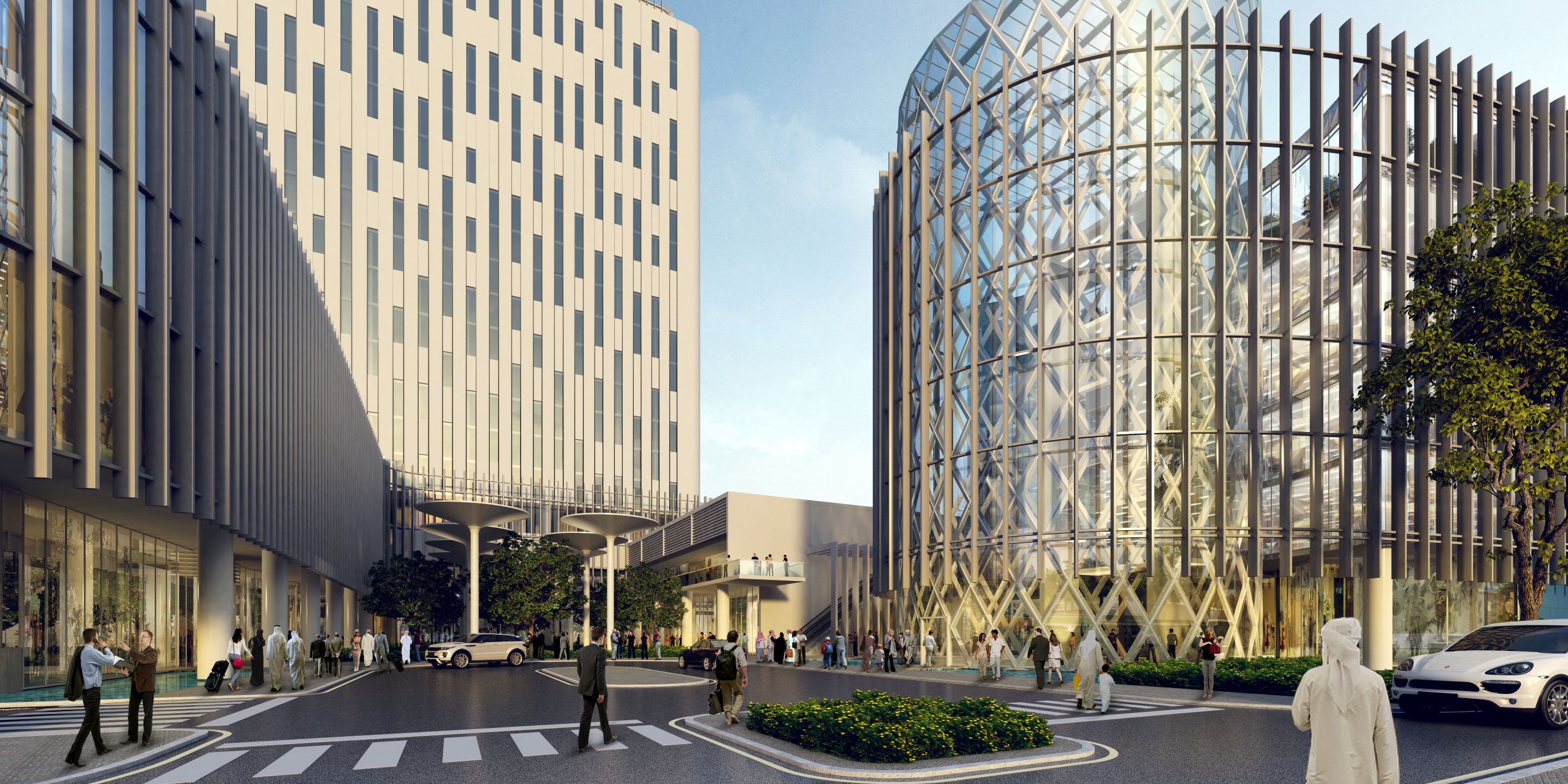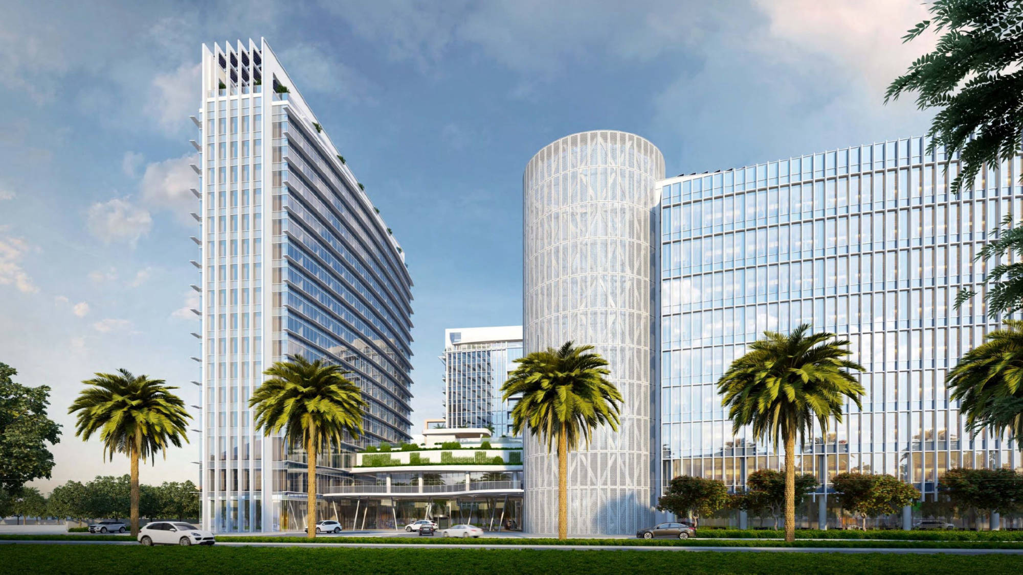 It is a mixed-use development with offices, 3-star business hotel, serviced apartments, retail area and community facilities: gym, tennis court, nursery and prayer rooms.