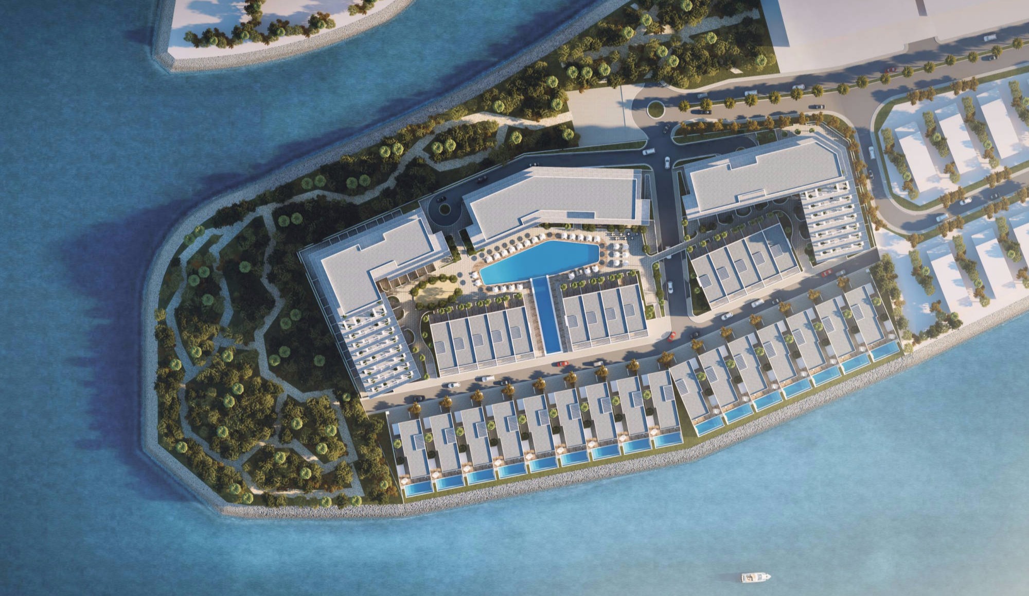 It is a residential waterfront development on the South-Western part of the Dilmunia island East of the Airport.